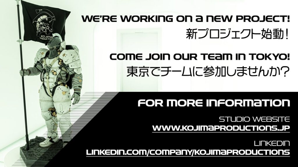 The Japanese studio famously known for Metal Gear Solid and Death Stranding posted an announcement on Twitter this morning that a new project was in development, along with accompanying job listings. It’ll likely be a while before any sort of concrete proof is given regarding what the studio is working on. Given that the studio is headed by the legendary Hideo Kojima, there’s no doubt that the final result will be a large, sprawling adventure that will leave players endlessly debating on internet forums and probably take months to fully understand.
