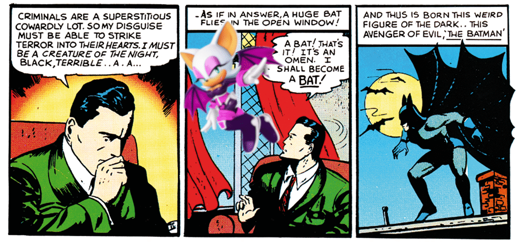 With this, Rouge’s position was secured and humanoid bats would never be seen again, on the small islands or otherwise. Rouge did more to purge the Sonic world of bats than the Knuckles Clan ever could. I would happily posit that if Batman existed in the Sonic universe, Rouge was the bat that broke into his manor and inspired him to take up the mantle. All for the sake of creating an environment with so many supervillains, American citizens would have to learn to rely on the police.