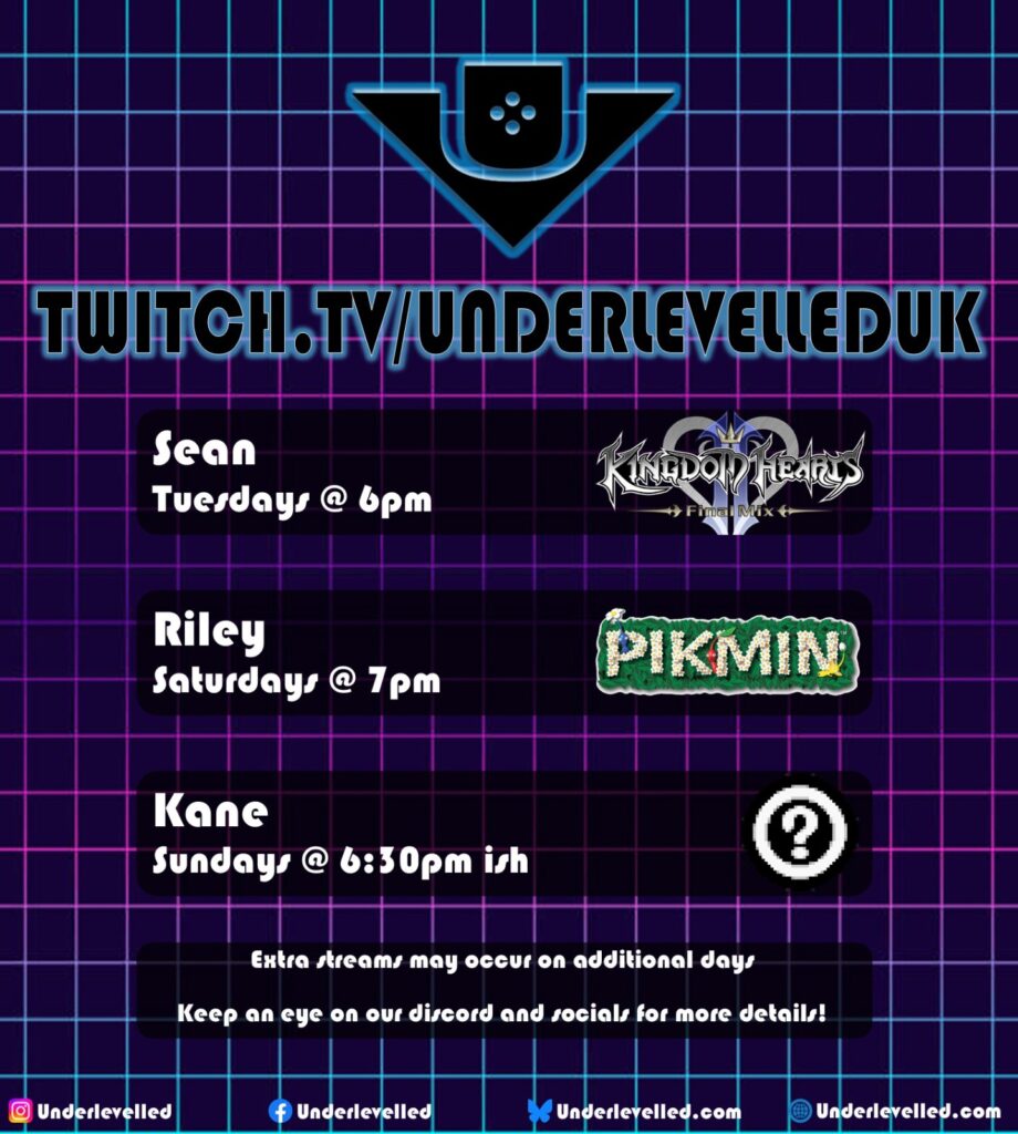 We are happy to announce that as of January 30th 2025, we have resumed our plans for multi-host streaming on the Underlevelled Twitch channel! Please see below for our basic weekly streaming schedule. This is subject to change at any time in future so please check our most recent published schedule on our socials to keep up to date.