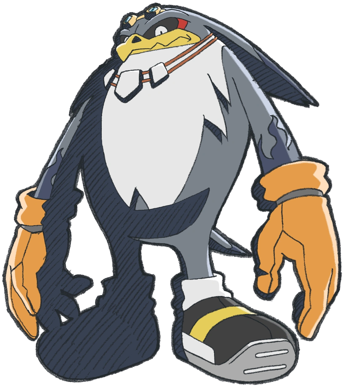 Wave the Swallow is seen as Tails’ foil here; the intelligent mechanic who constructs and maintains the gang’s gear. She is often seen “dissing” Tails, as Knuckles puts it (yeah, this was 2006, it’s part of the territory), and trying to put him down whilst secretly respecting his work. Her design consists of white and purple streetwear: a tracksuit and head scarf, which works as a good counter to Amy and Tails simultaneously, whilst allowing her to stand out against the wider cast.