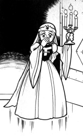 Next up, we have the very questionable outfit from The Crystal Trap. Look, I know dresses aren’t very practical for adventuring, but this outfit is God-awful. The plain leggings paired with the thigh-high boots and puff sleeves are definitely a choice that should’ve had a second opinion. All of this, along with more bling than even Elizabeth Taylor, is astounding. The only redeeming feature is that it doesn’t have clashing colours, but that’s not exactly hard to avoid in a monochrome book.