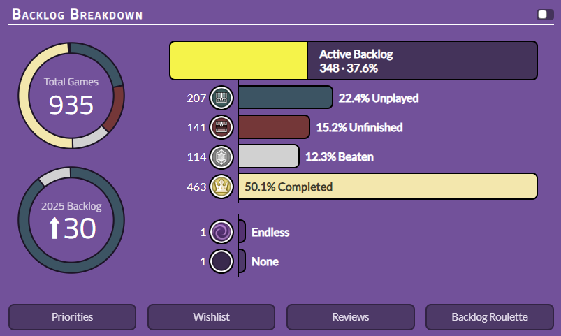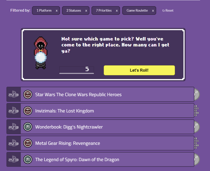 But, by far, the most underrated feature on the site is the backlog roulette which is fully customisable with filters for consoles, priorities, and statuses. This allows you to decide how many games get chosen if you’d like to narrow your options down. This can be a huge help in choice paralysis when deciding to tackle a particularly daunting backlog size. Especially if you know which platform you want to play.